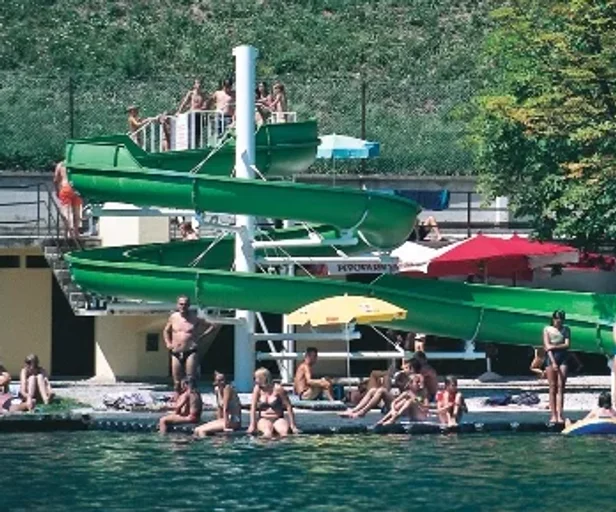 You will find everything you need for an unforgettable summer day on 260 meters of nicely settled shore: two waterslides, a jump board, plastic rafts on the lake, fenced swimming pools with a depth of 50, 120 and 180 cm, a swing, playgrounds and sandpit for children, kayaks, massage, table tennis, board games, "Books on Vacations", deckchairs, sunshades, rich catering offer and much more. Public Lido welcomes swimmers also with its tidy changing rooms, lockers, toilet areas, several outdoor showers and swimming area access for elderly and people with disabilities. International Blue Flag eco-label is a proof that Public Lido operates in accordance with strict international standards regarding eco-friendly management, safety, cleanliness and proper water quality.